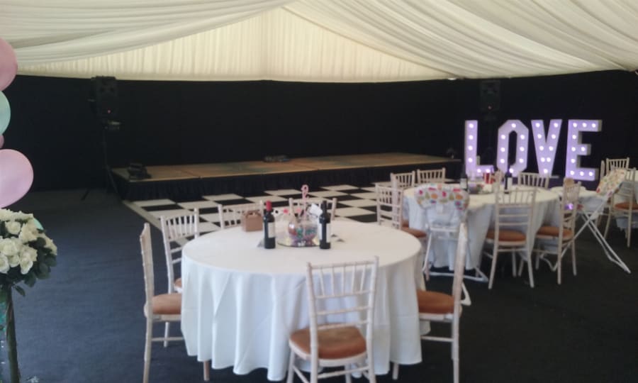 Marquees are great for family events, Weddings, birthdays, Corporate Events or just simply for when you need more room, sizing from 6mx6m at £400 up to 12mx25m at £1,600 we have a size sure to fit your requirements. Optional extras are also available such as lighting, lining and matting or carpeting as well as tables and chairs