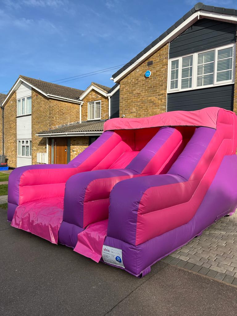 Our 6ft Pink and purple slide is great for any party with its colour pink and purple theme this unit goes great with our pink and purple range. ths is also great for halls due to its low height